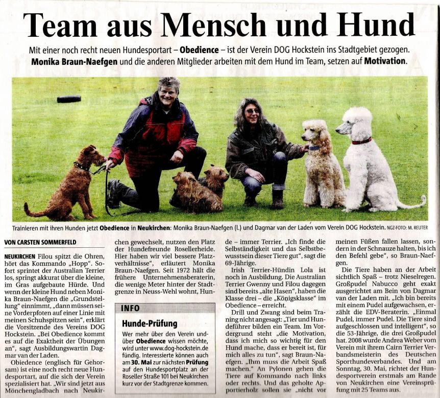 Die NGZ berichtet über DOG Hockstein e. V.